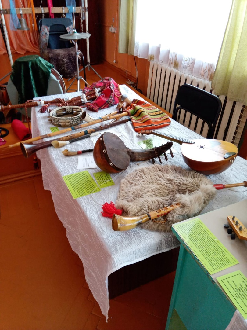 Обучающимся 7а класса посчастливилось побывать на выставке народных музыкальных инструментов и этнографии (г.Челябинск). Ребята узнали историю возникновения инструментов, было продемонстрировано звучание отдельных экспонатов выставки: тибетской чаши, дождевой палки, узбекского корная, гармошки-черепашки, арабской волынки, жалейки, рожка, гуслей, буль-буль, пепук и т.д. Программа оказалась не только познавательной, но и развлекательной. Ребятам удалось поиграть на инструментах, а так же примерить головные уборы разных национальностей